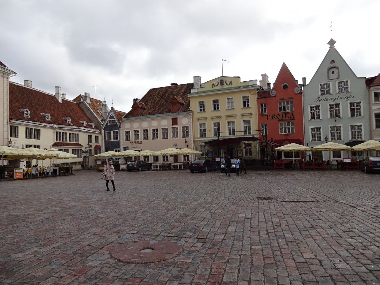 位置的にも存在的にも、タリン旧市街の中心にあたる広場です。オープンテラスのレストランが並んでいますが、4月下旬では寒すぎて外には全く客がいませんでした。