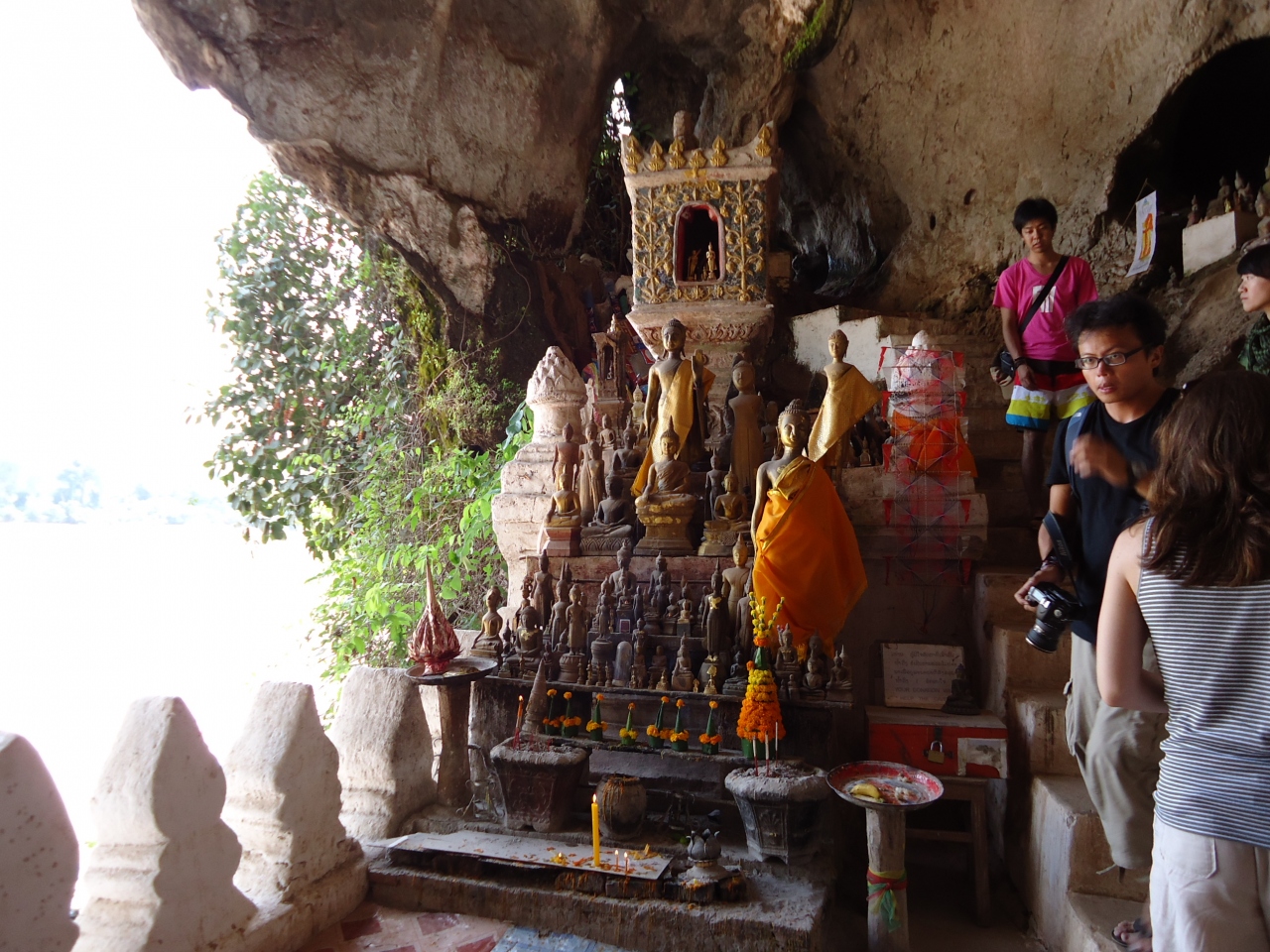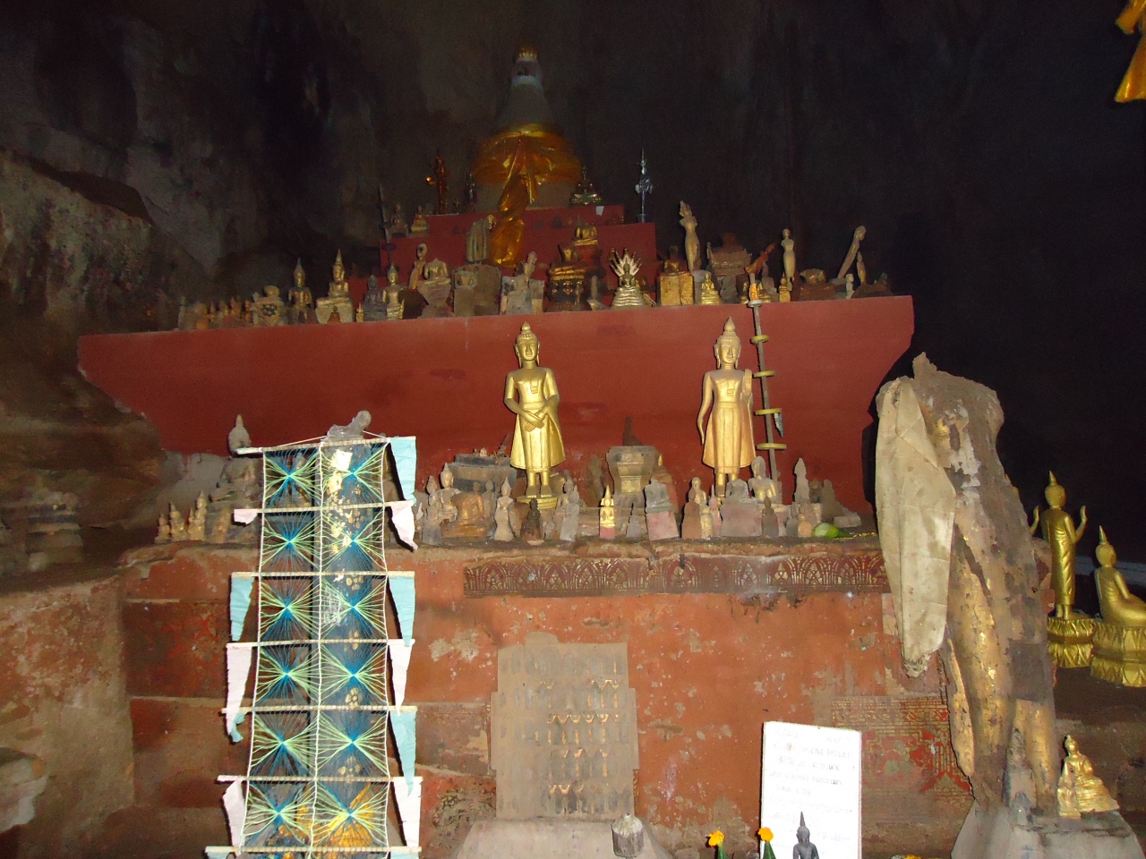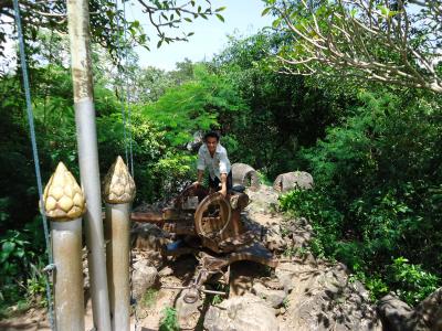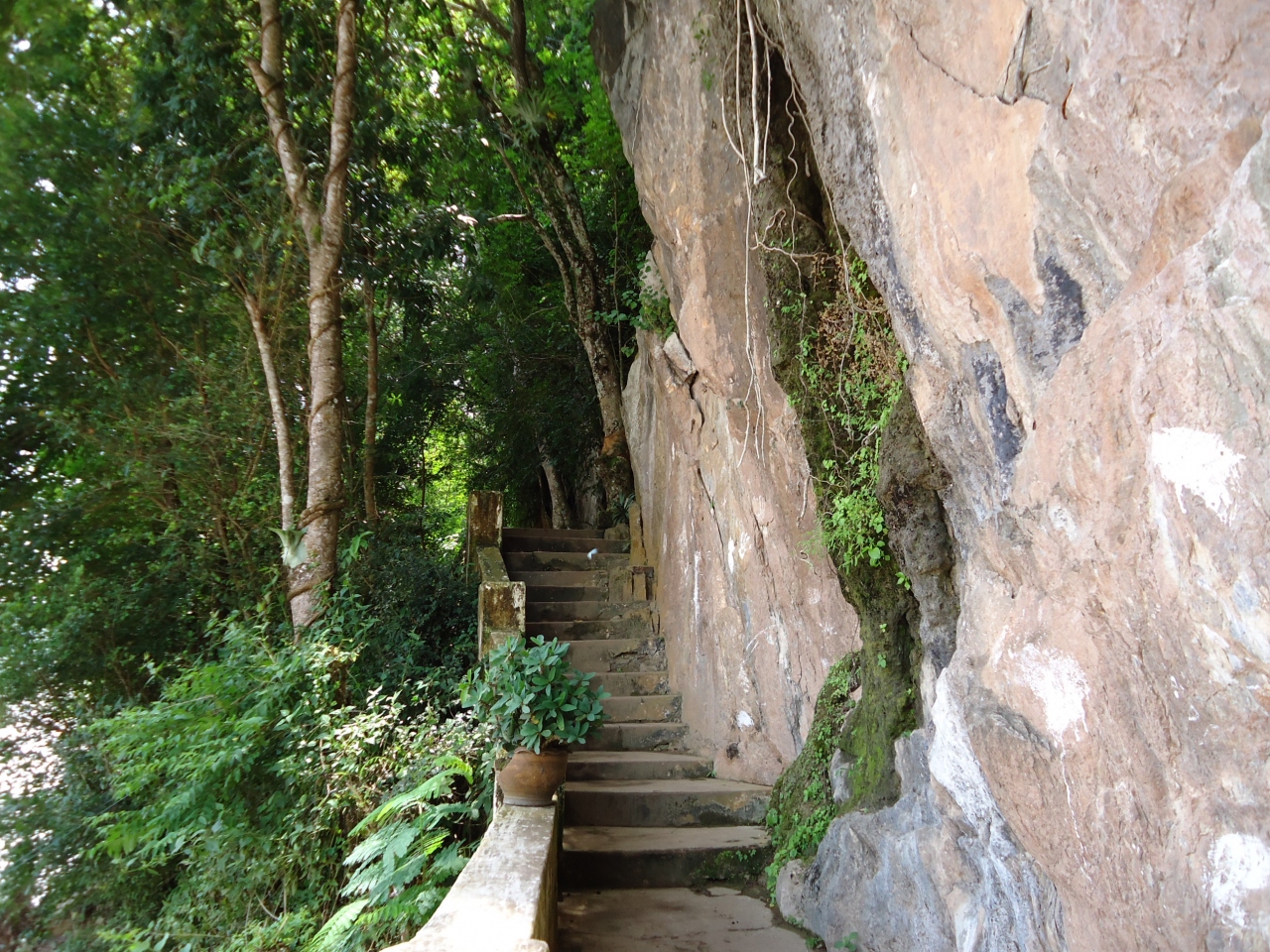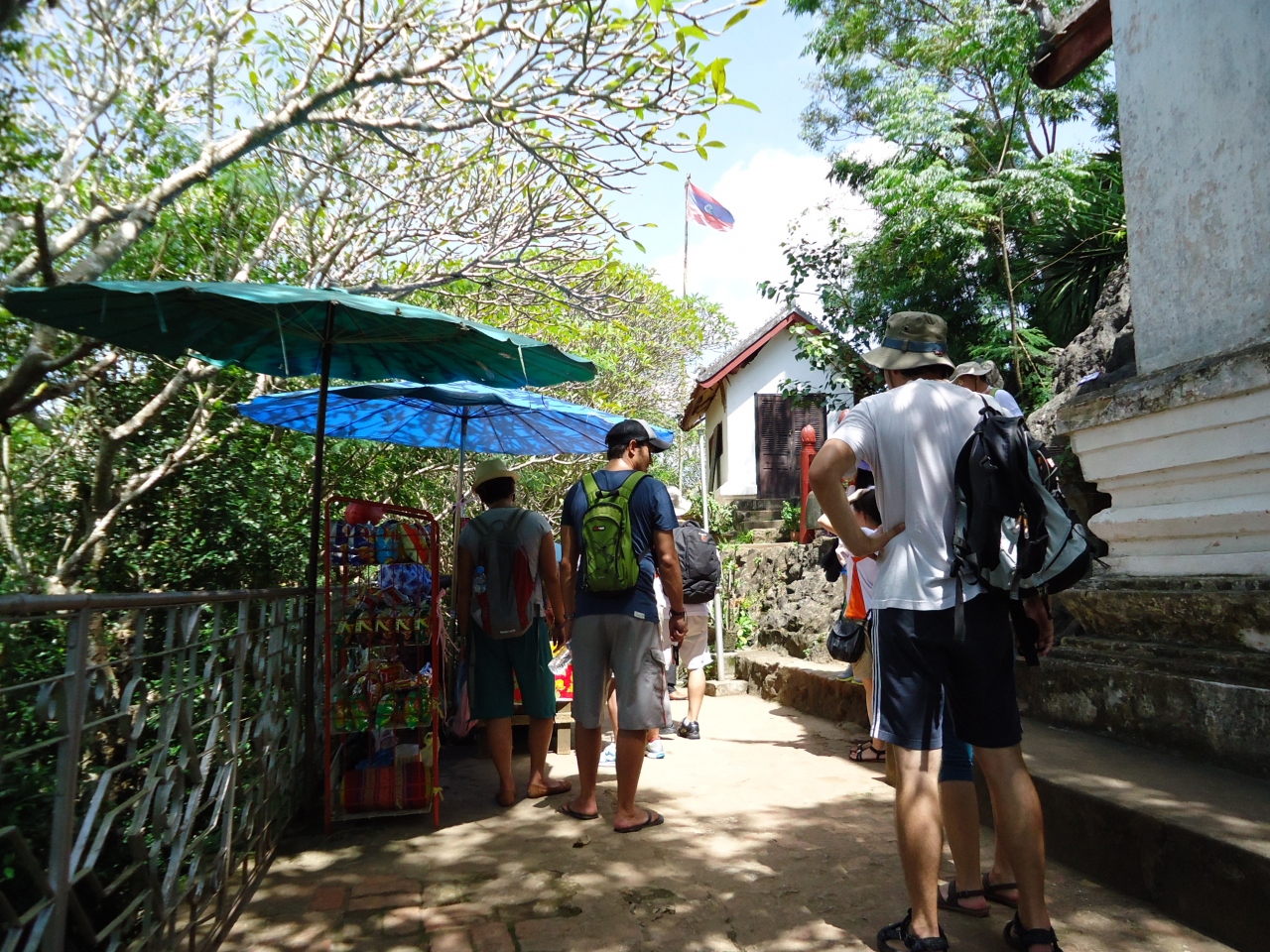 裏側(ナムカーン川側)から登りました。途中に黄金の仏像や洞窟、戦争中の砲台(?)等がありました。