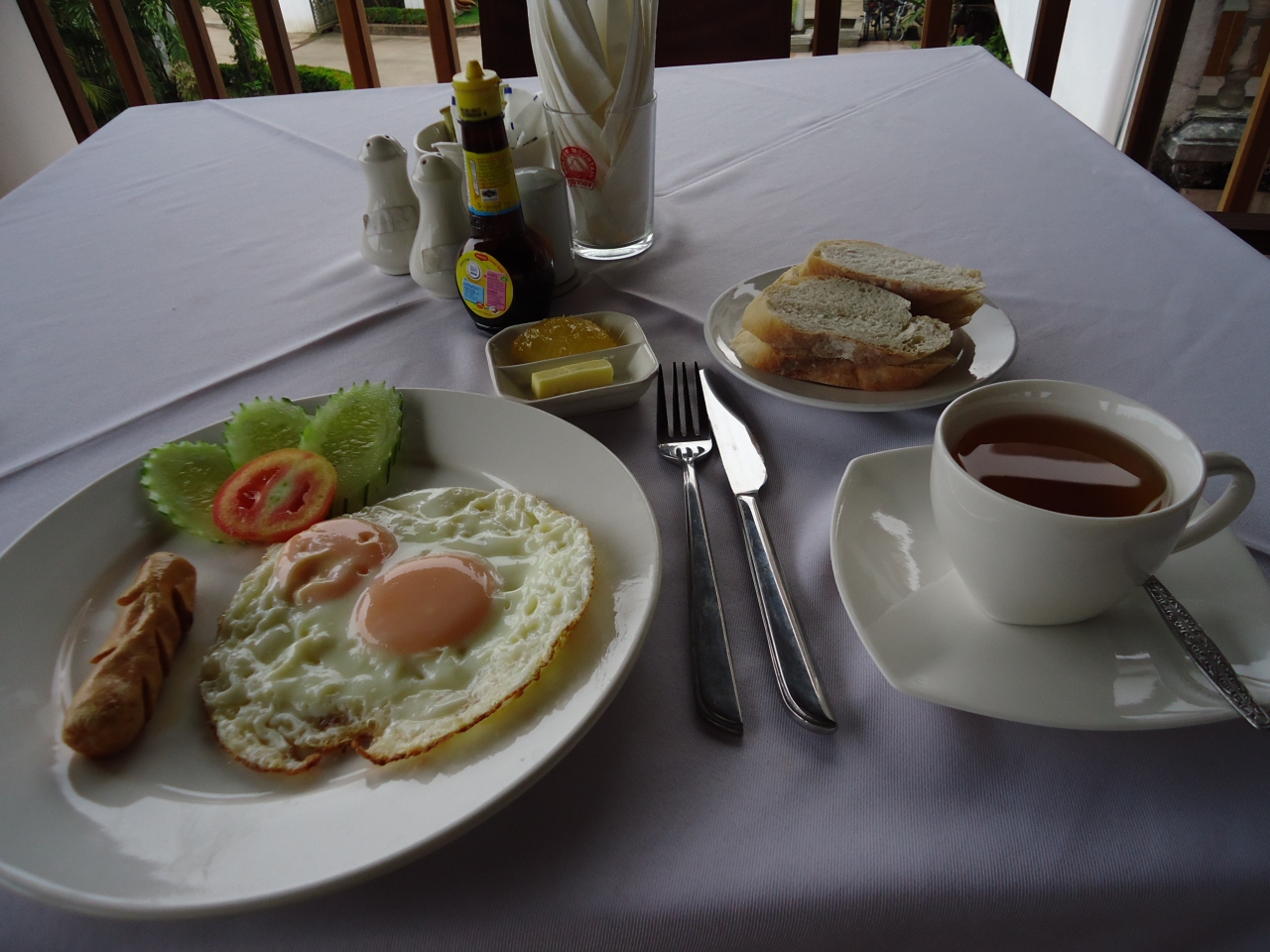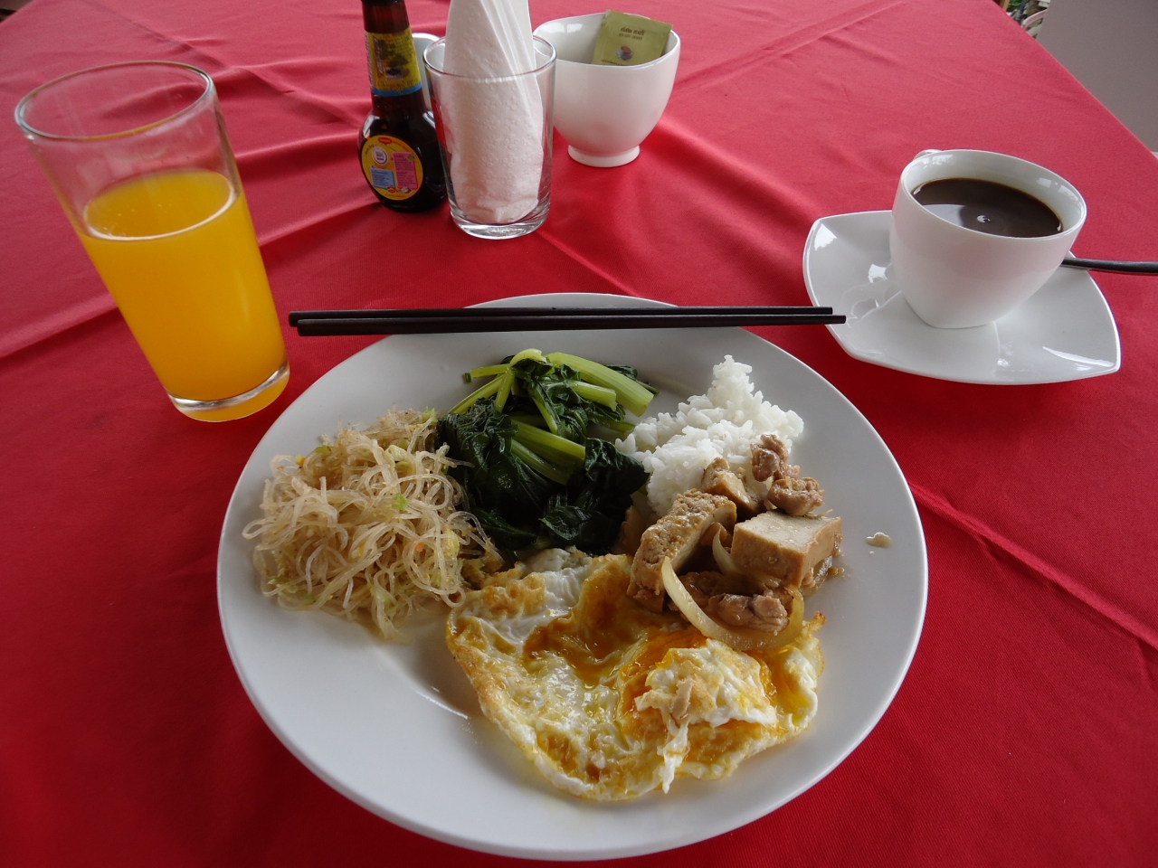 朝食は、宿泊客が少ない時は一人分ずつ作ってくれ、団体客がいる時はバイキングでした。前者の方が美味しかったです。パンが美味しい。珈琲を頼むと、ココアのように濃厚なラオコーヒーが頂けます。