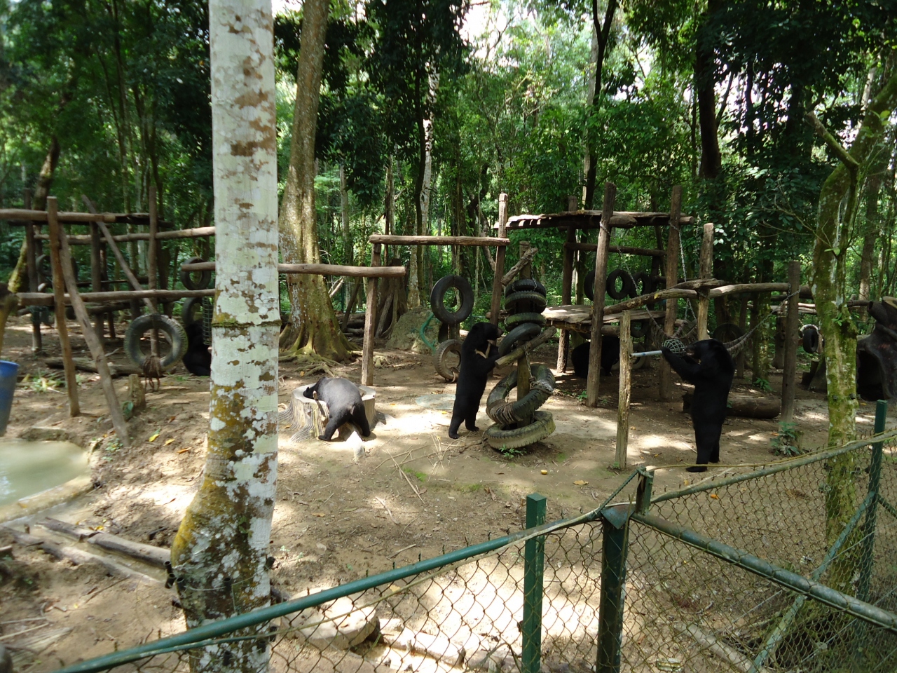 入場すると、滝の手前にツキノワグマの保護センターがあります。クマの立ち姿が人間そっくり。