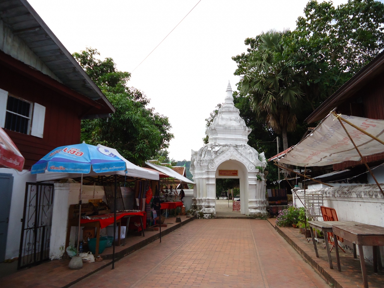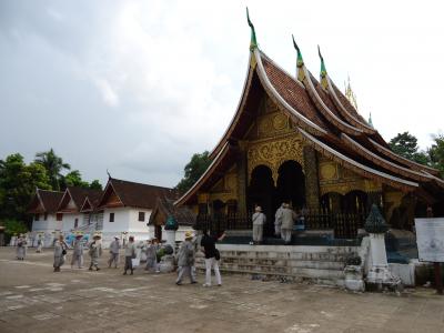 ルアンパバーン一番の見どころなのかもしれませんが、非常にのんびりした雰囲気。チケット売り場は入ってすぐの所にある、運動会の大会本部のような白いテント。土産物屋もありましたが客引きもなくのんびりした雰囲気。