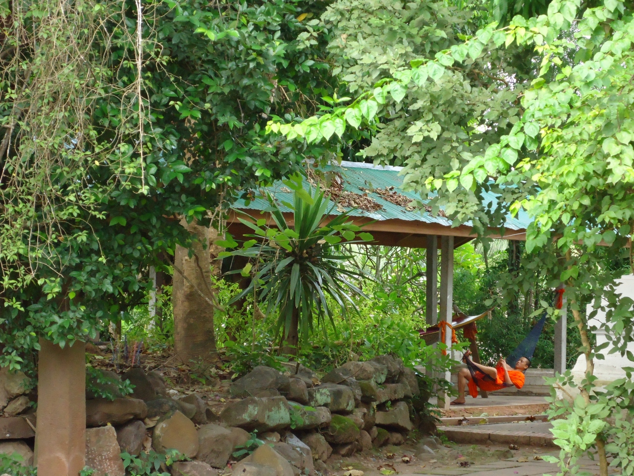 木陰のハンモックでお坊さんがのんびりしていました。- 旅行時期