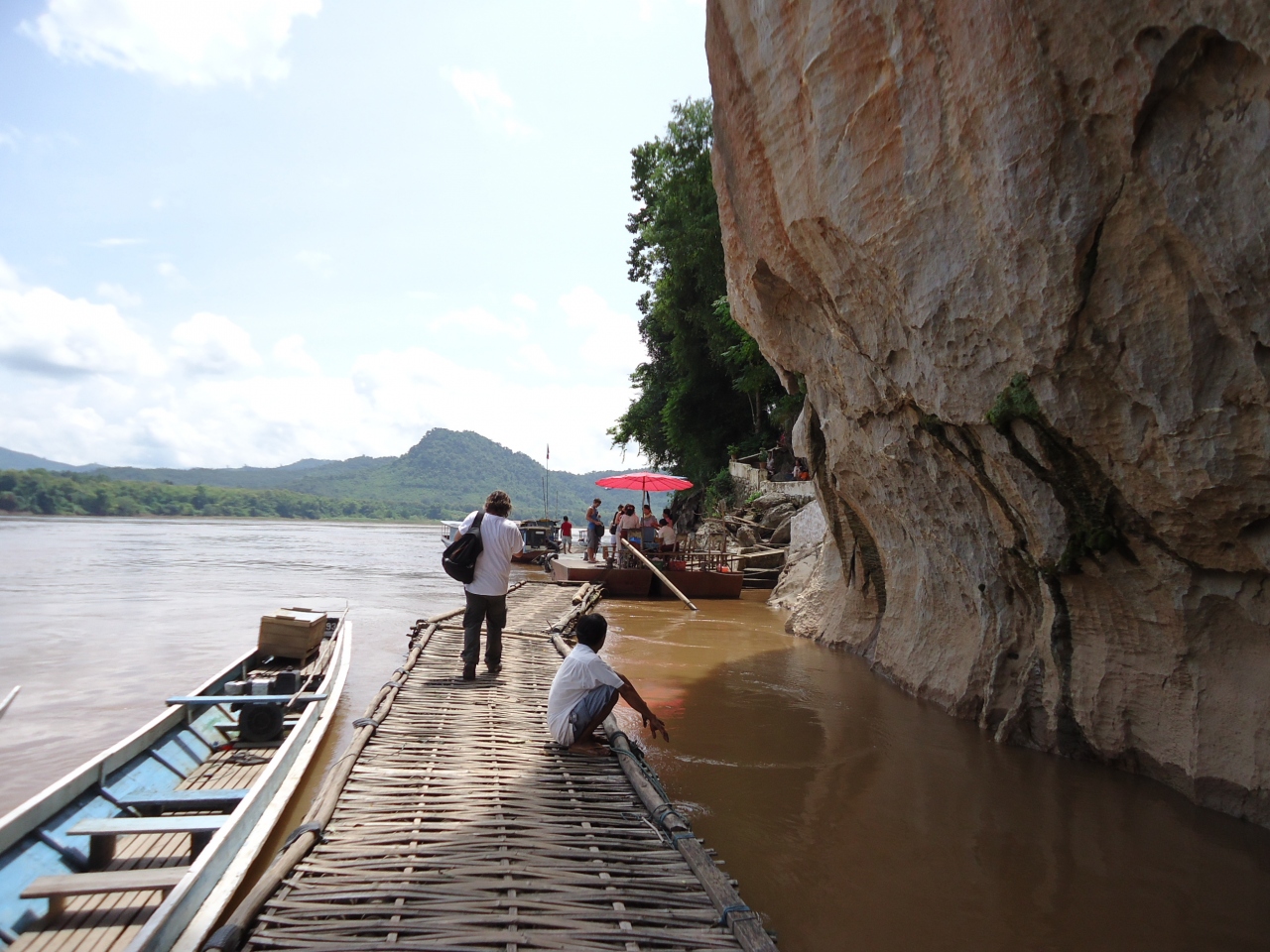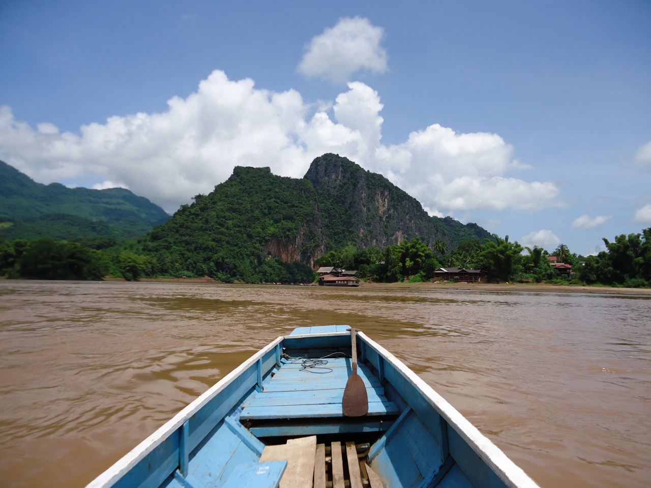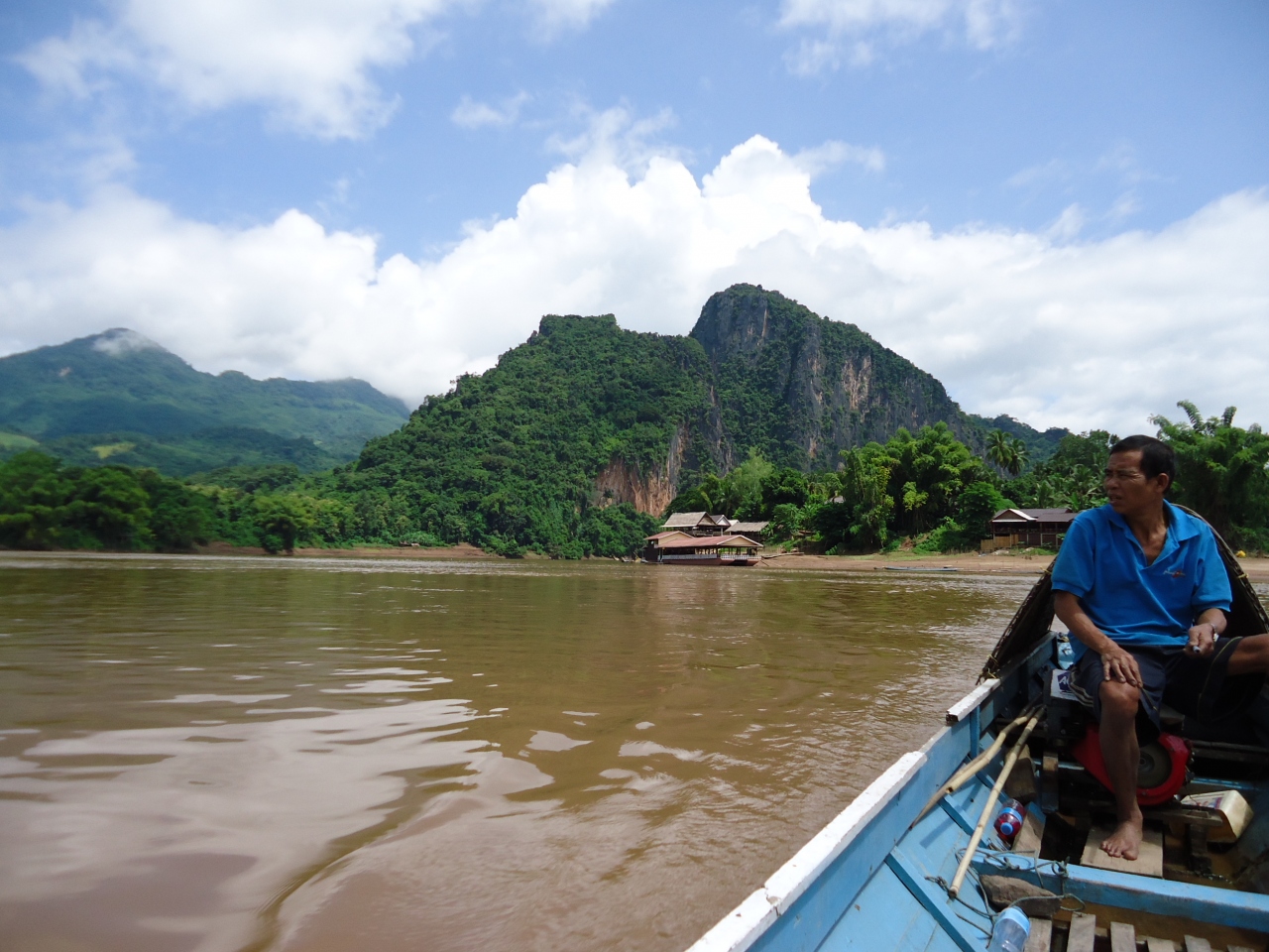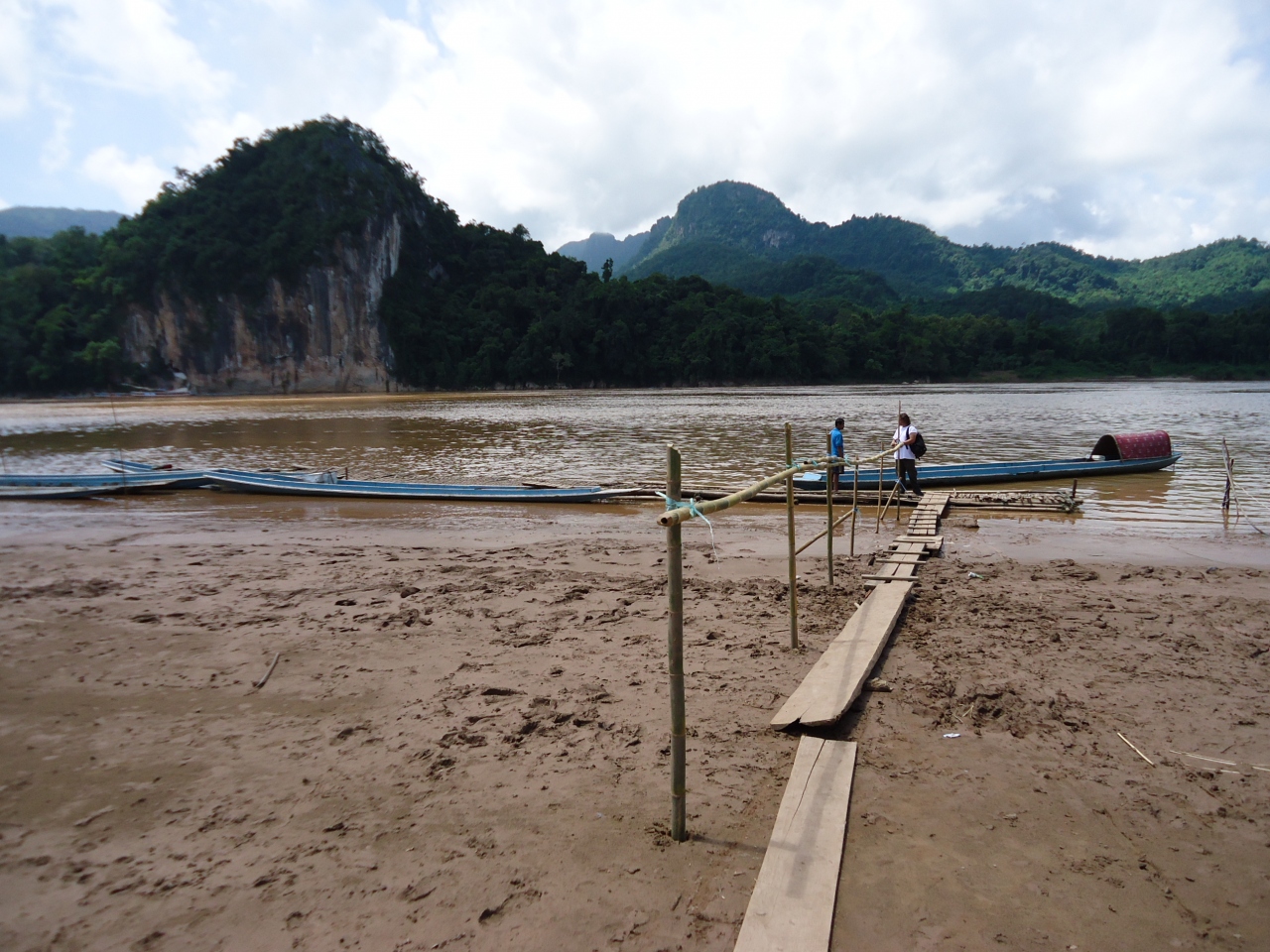 パークウーに行く際に、ルアンパバーンからボートに数時間乗って行く方法もありますが、私はトゥクトゥクで対岸まで行って、小さいボートでメコン川を渡りました。