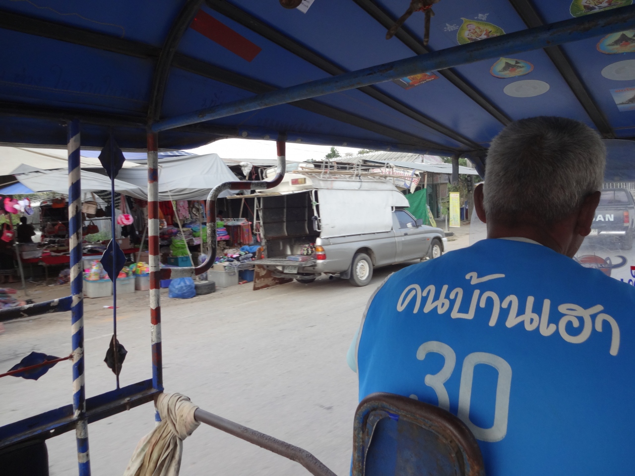 チェンコーンのバスターミナルから国境へはトゥクトゥク(サームロー?)に乗りました。本来乗り合いで行くもののような気がしましたが、私が「これに乗って」と指示されたトゥクトゥクには私しか客がいませんでした。客が乗っている他のトゥクトゥクは行き先が違ったのかな?