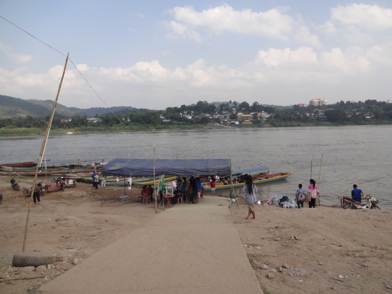 簡易な屋根の付いたボートでラオスへ。所要時間は5分くらいかな?快適で楽しいので早く感じます。- 旅行時期