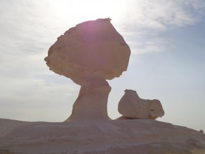 白砂漠で一番有名な岩、マッシュルームとチキン(ひよこ)。