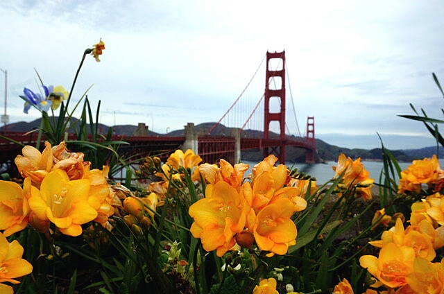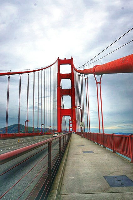 グランドハイアットに宿泊したのですが、土日祝日のみですが、すぐ近くのバス停(Sutter St & Stockton St)から路線バス76X(Marine Headlands/GG Bridge)を利用して行くことが出来ます。写真を撮るだけだったのでトランスファーチケット利用で往復2ドルで行くことが出来ました。バスの窓からどんどん近づいてくるゴールデンゲイトブリッジに感動!降りるべきバス停につくと「Golden Gate Bridge」とバスの運転手さんが大きな声で教えてくれました。お天気が良ければもっと素敵だったろうな。有料道路なので車のスピードがものすごく速く怖いくらいでした。帰りに76Xに乗って帰るには道路の下を抜けて逆側のバス停を利用することも忘れずに。