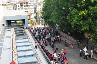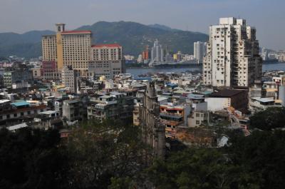 天主堂から右側に森のような遊歩道があって、そこを行くと階段があって大砲台に抜けますが、右に行かないでいったん天主堂の奥のほうに行って右にいくとエスカレーターで博物館の入り口まで上がれます。博物館にはいらず、そのまま外に出れば公園に行けます。なんかみんな右のほうに歩いていくのでそちらに行ったら階段と通路が長かった。眺めは上から見ることになるので差はないかと思いますが。