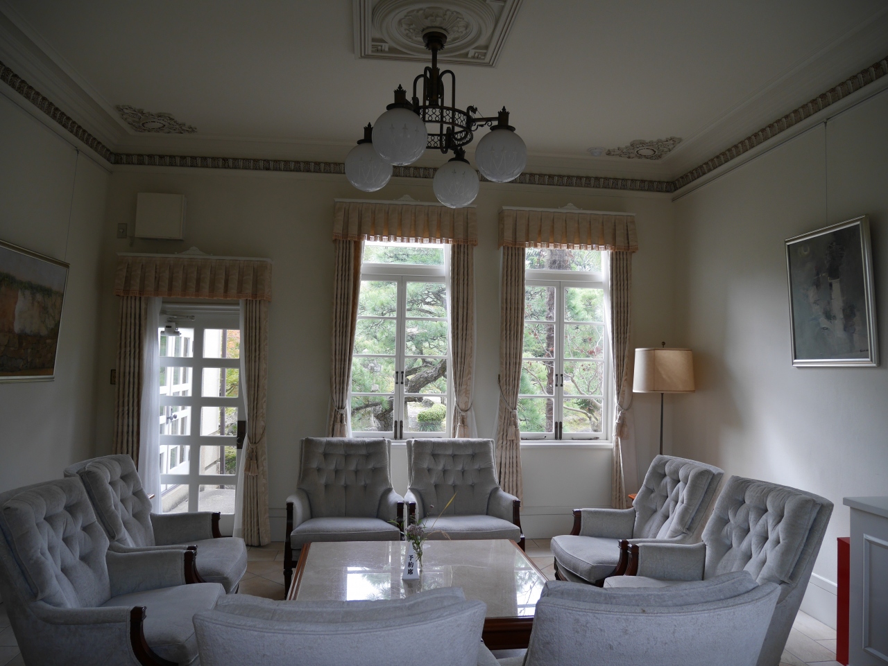 石川県立美術館広坂別館 旧陸軍第九師団長官舎の建物です。耐震工事をかねたリニューアルによって文化財保存修復工房が併設されて、修復工房の事業を紹介する部屋やガラス窓越しに修復作業を見られる見学スペースが出来ました。
