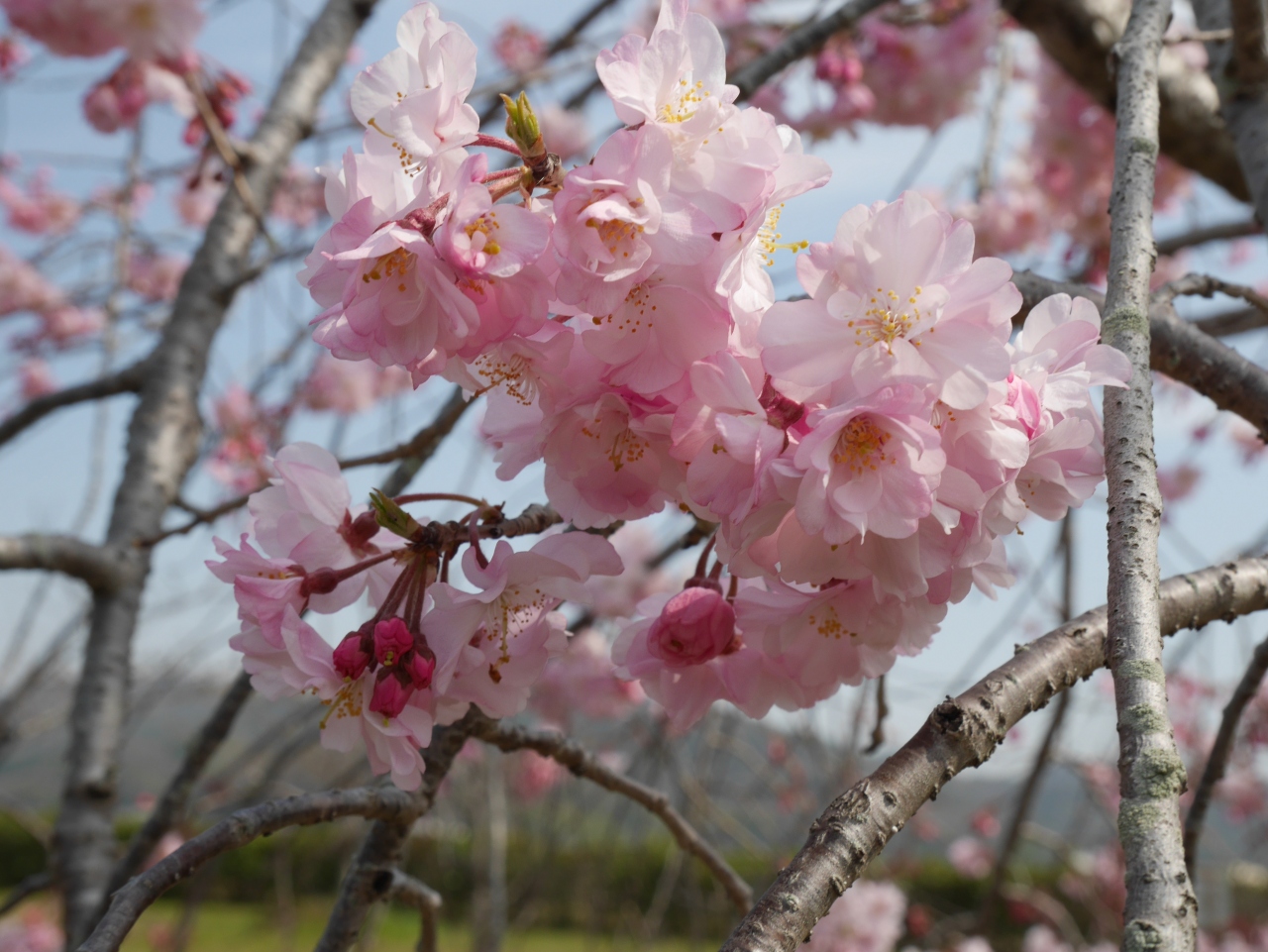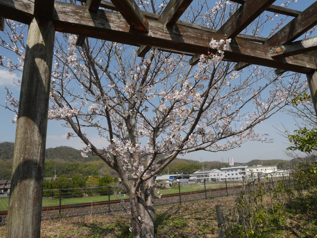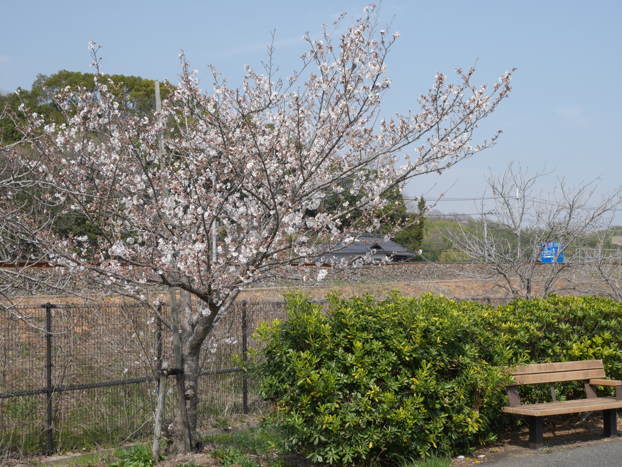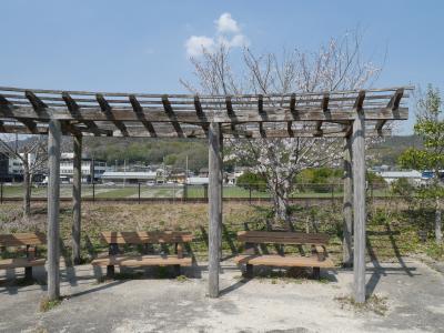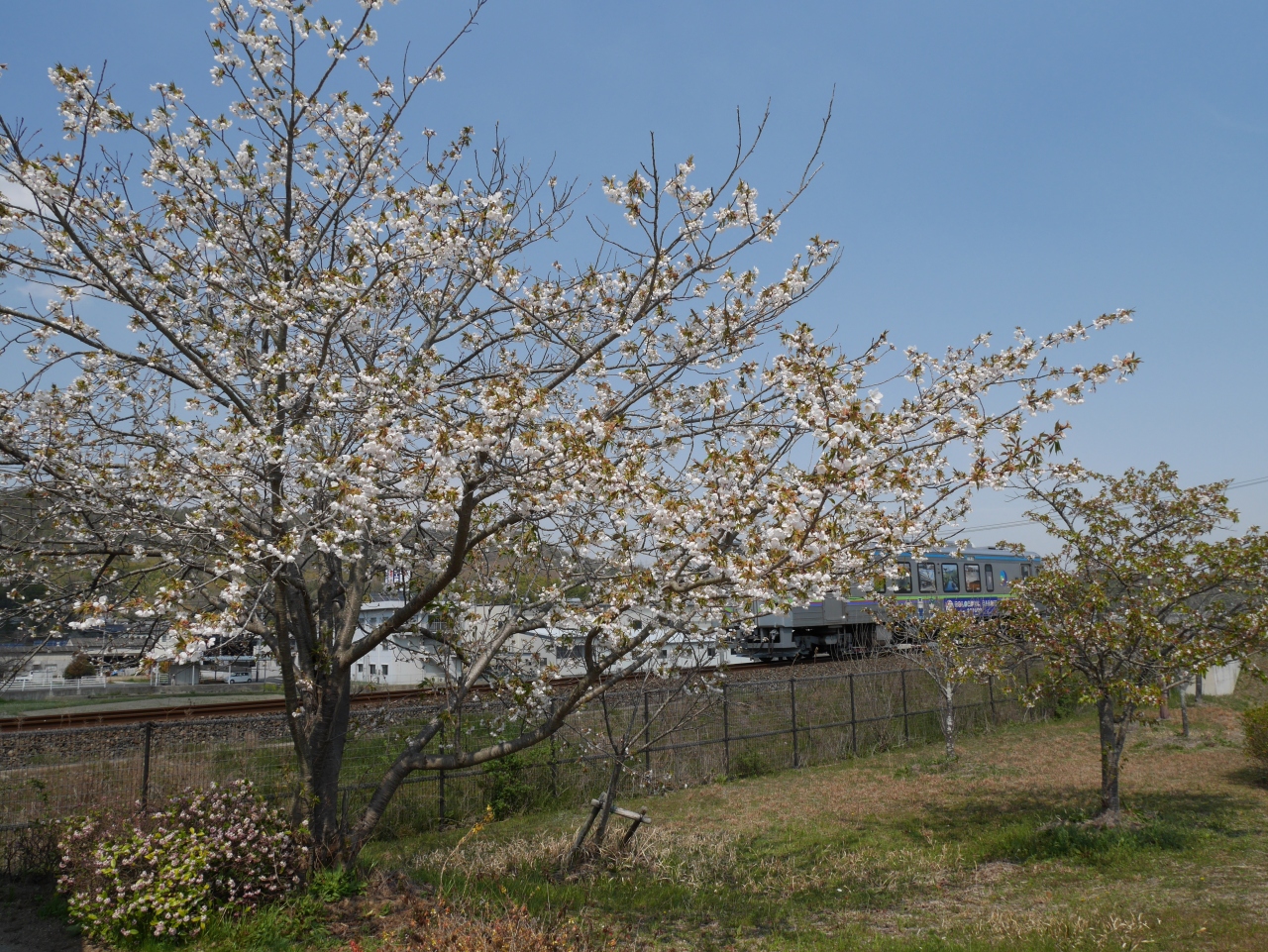 井原鉄道井原線の備中呉妹駅(びっちゅうくれせえき)すぐ隣、まきびさくら公園には河川敷1キロほどの間に約250本の桜が植えられています。無料で散策できるので地元の人がお花見を楽しんでいるようです。休憩できるベンチもあります。