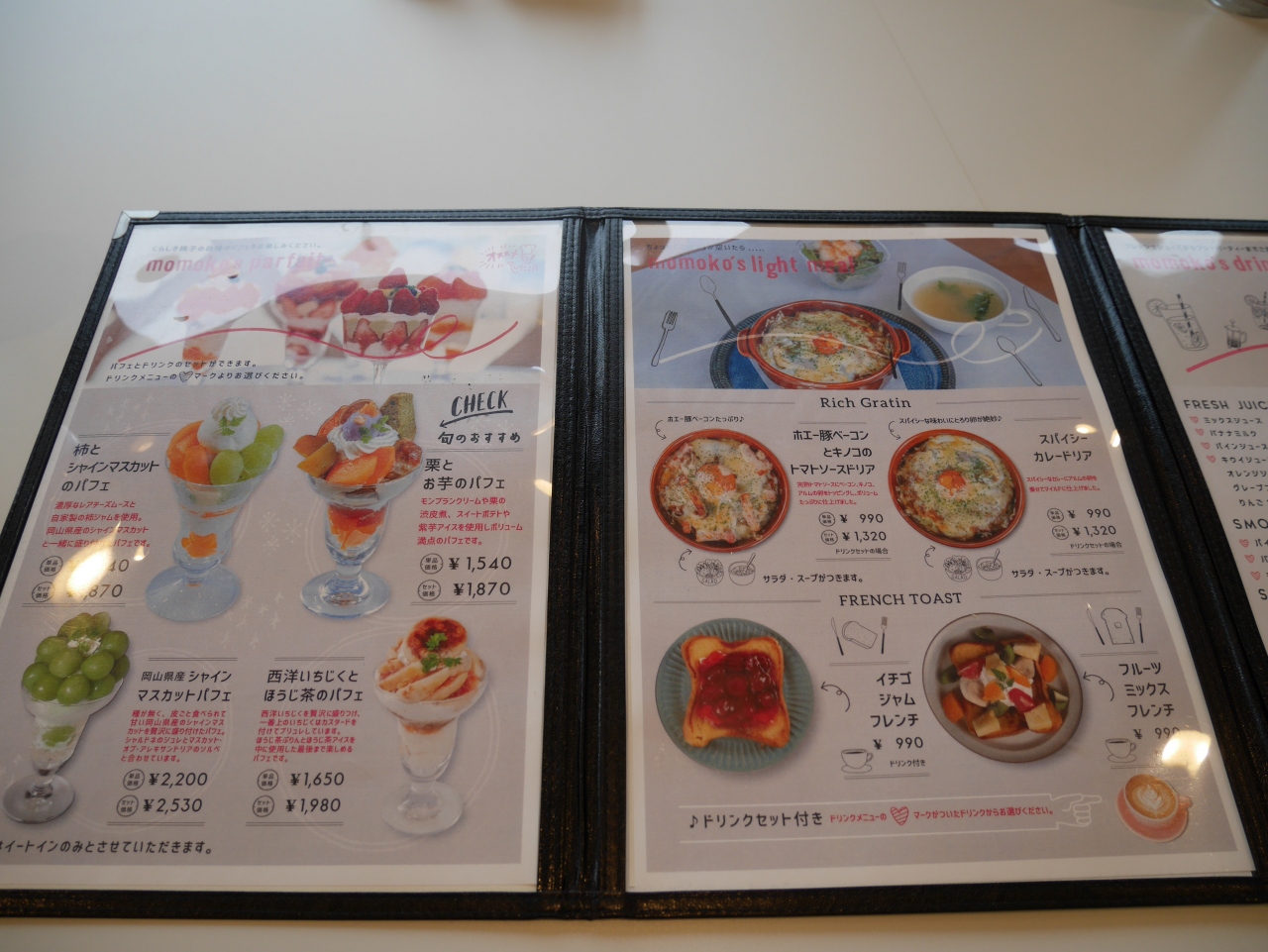 美観地区ではパフェの人気店として知られる「くらしき桃子」ですが、倉敷市民会館店は、くらしき桃子では初のランチメニューも提供するお店です。テイクアウトもあります。もちろんパフェやドリンクもあります。美観地区のお店と比べるとお客さんも割と少ないので、落ち着いて食事できるでしょう。