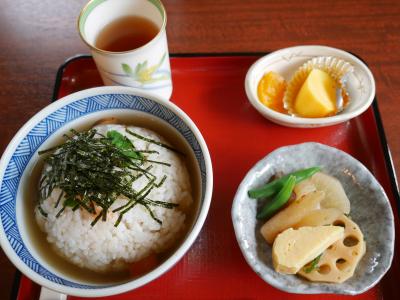 具材は海老・しいたけ・人参・ゴボウなどで、贅沢な物は一切入っていない素朴なまぜご飯in白だしの汁といった感じ、簡単に言うと上品なお茶漬けです。