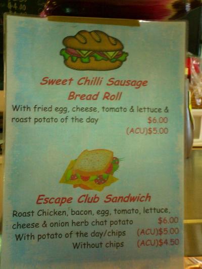 写真は11:30にお店に入れましたが売り切れメニューです。下のクラブサンドの方です。「パンがないから作れない。他のパンを選んで」といわれました。