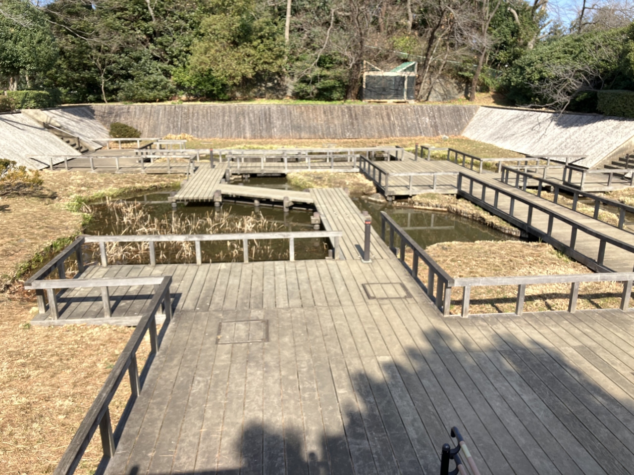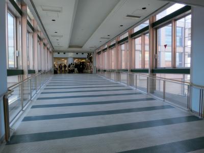 新館と接続するガラス張りの通路から