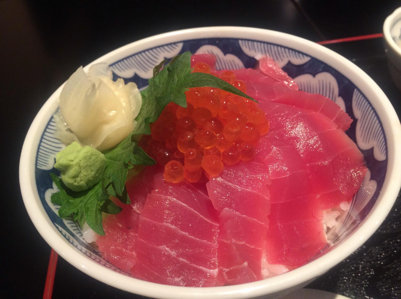 店頭の看板に誘われ780円のまぐろいくら丼を