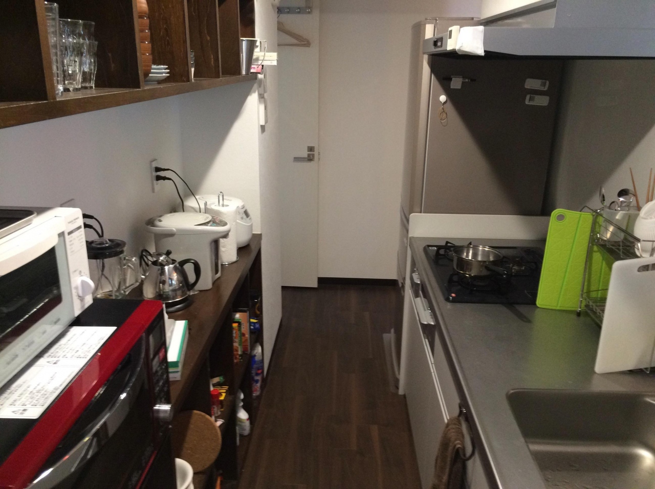 キッチン完備、調味料とかもろもろもしっかり完備しているから材料だけ買い自炊もいい