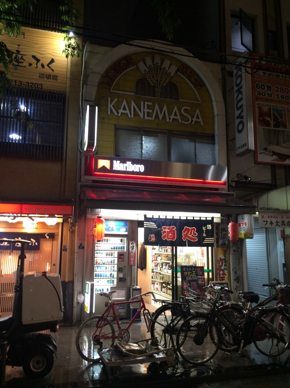 道頓堀の日本代表する老舗サウナニュージャパンの先にある酒屋、のかね正酒店