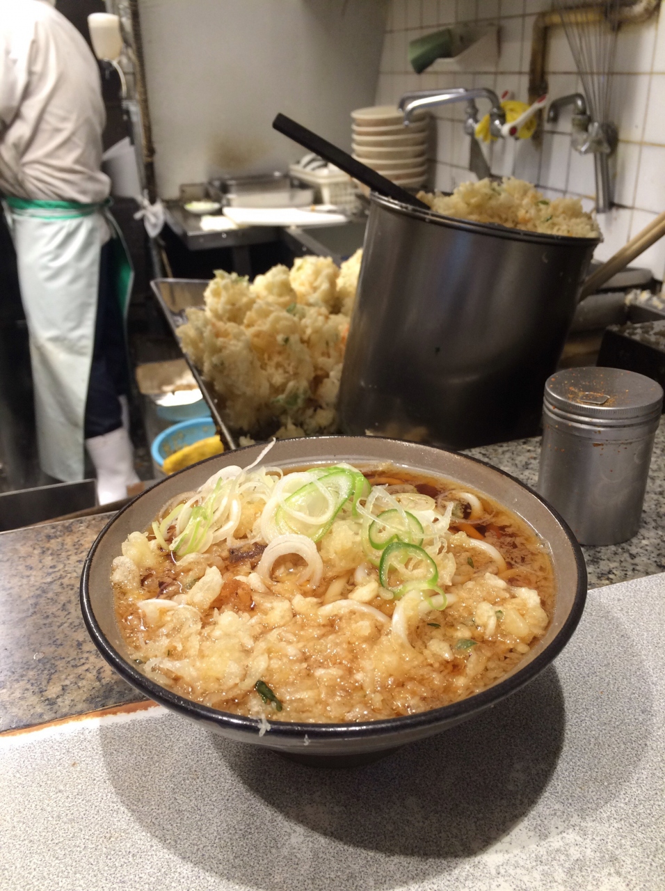思い出横丁の名店、立食いのかめやで、天玉じゃなくたぬきうどん300円を