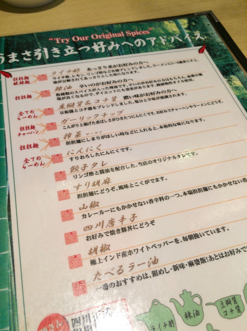 カウンターにはお好み調味料や搾菜、ニンニクチップなんかもあり色々楽しい