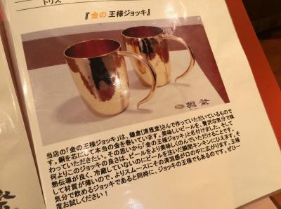 生ビールは金の王様ジョッキー、鎌倉長谷の清雅堂という銅器の専門店で金を巻いて造られたジョッキ