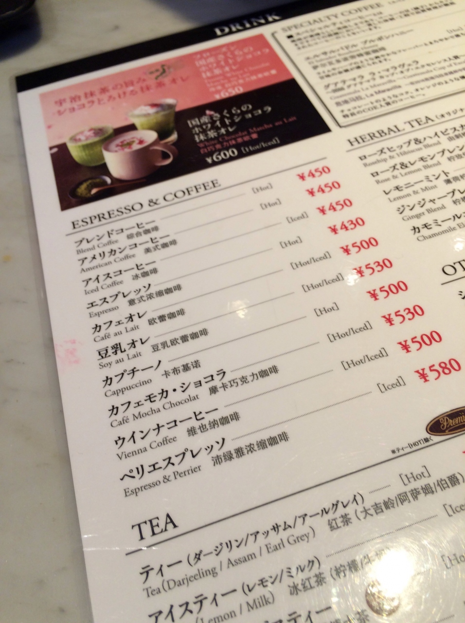 通常コーヒーは220円だけど、ここは480円なり- 旅行時期