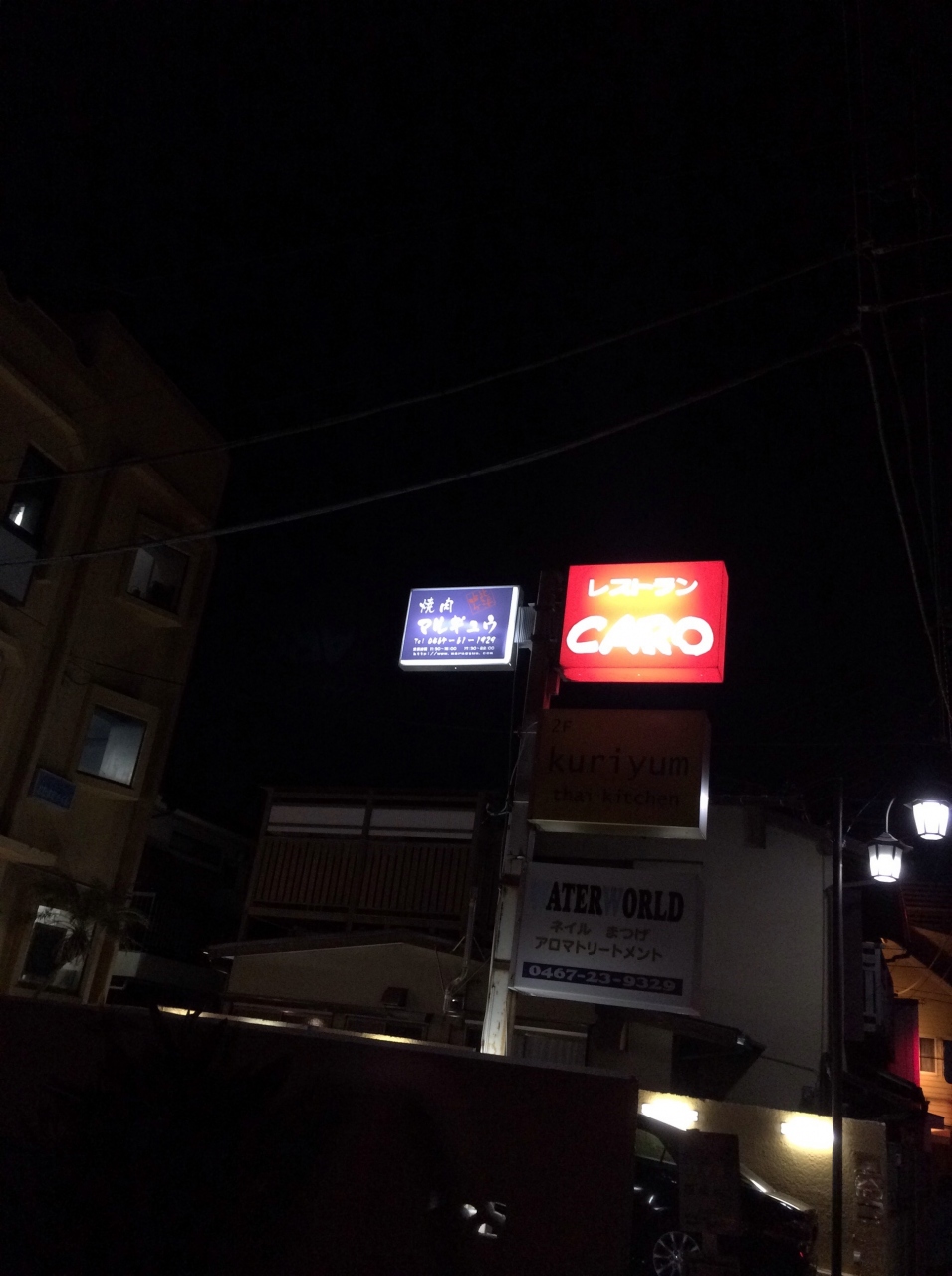 そのまま進むと右側の飲食店が数軒入るビルに赤いCAROの看板