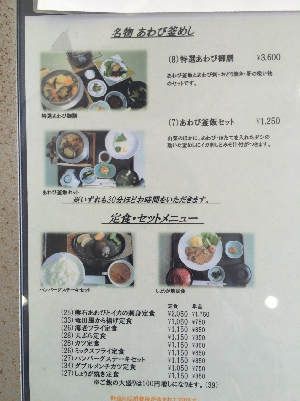 八雲のあわびの名産地熊石にある温泉ホテル、併設のレストランで釜飯定食