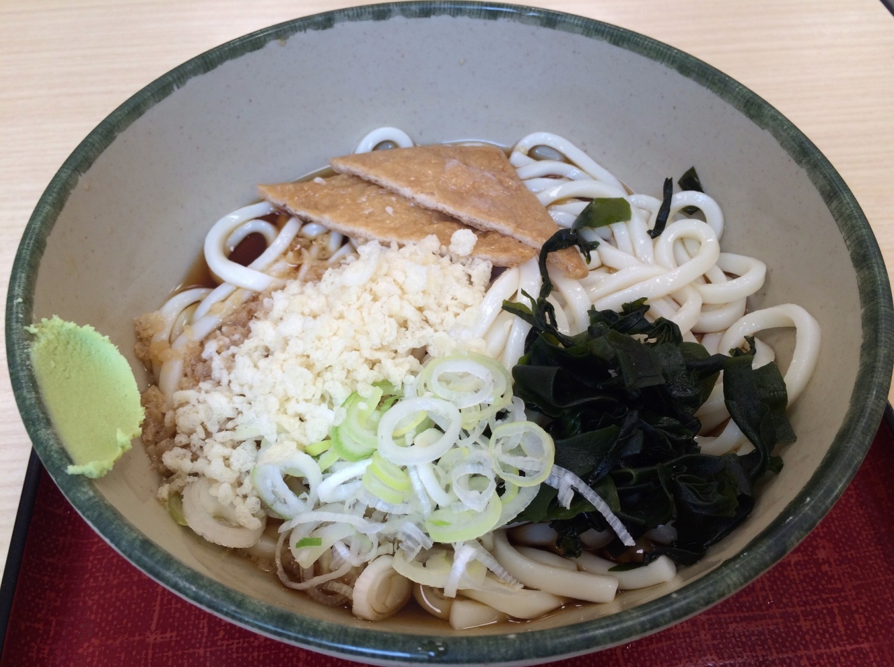 ワカメ、キツネの揚げ、たぬきの揚げ玉の3点盛り
