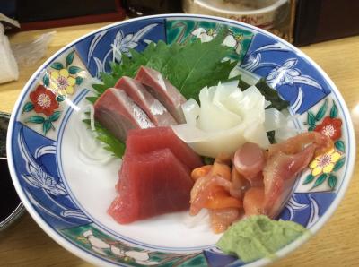 奮発して野菜の上にのせたお造り御膳、1150円を