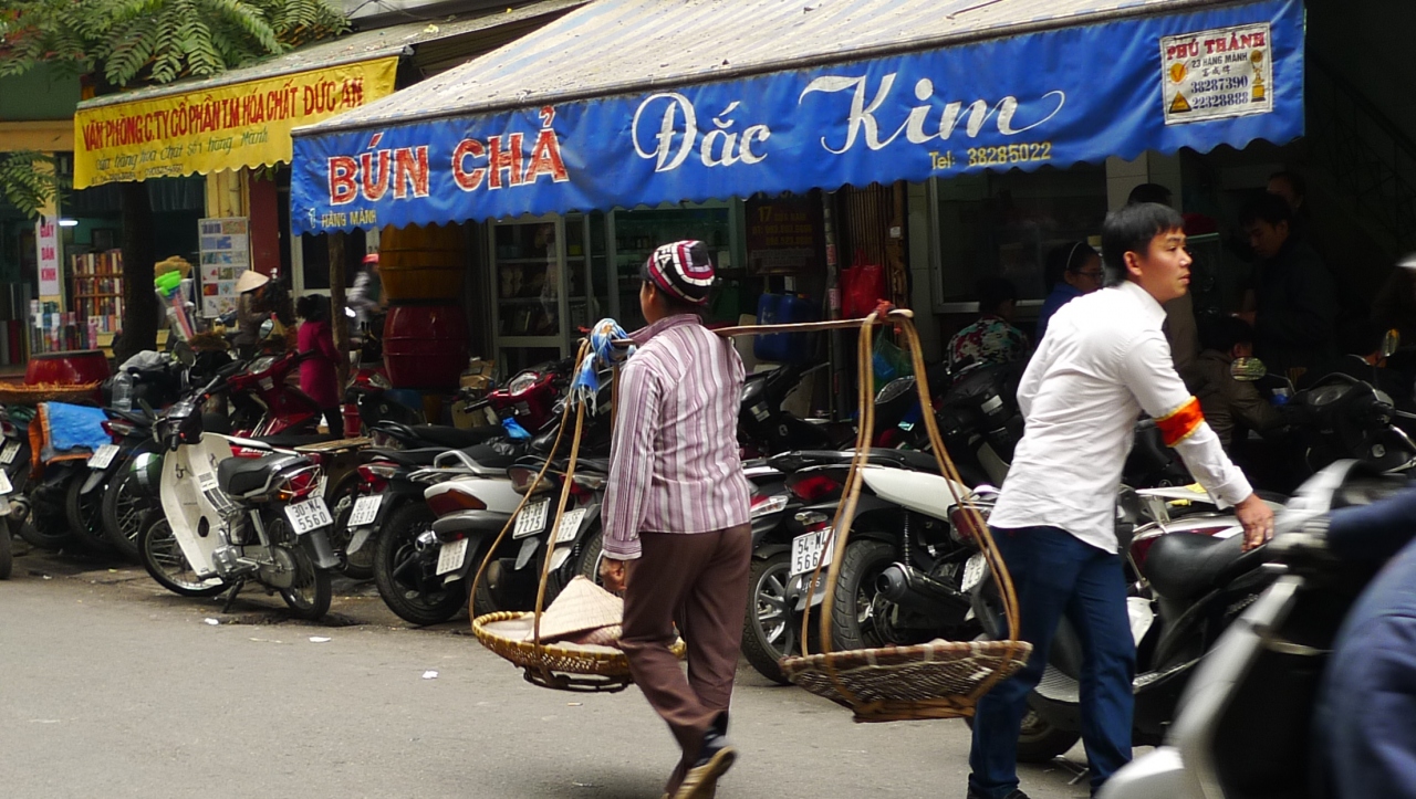 朝食のフォーは近くの屋台で作ったものをホテルに運んでいる様子。