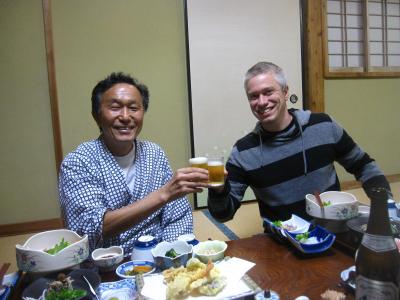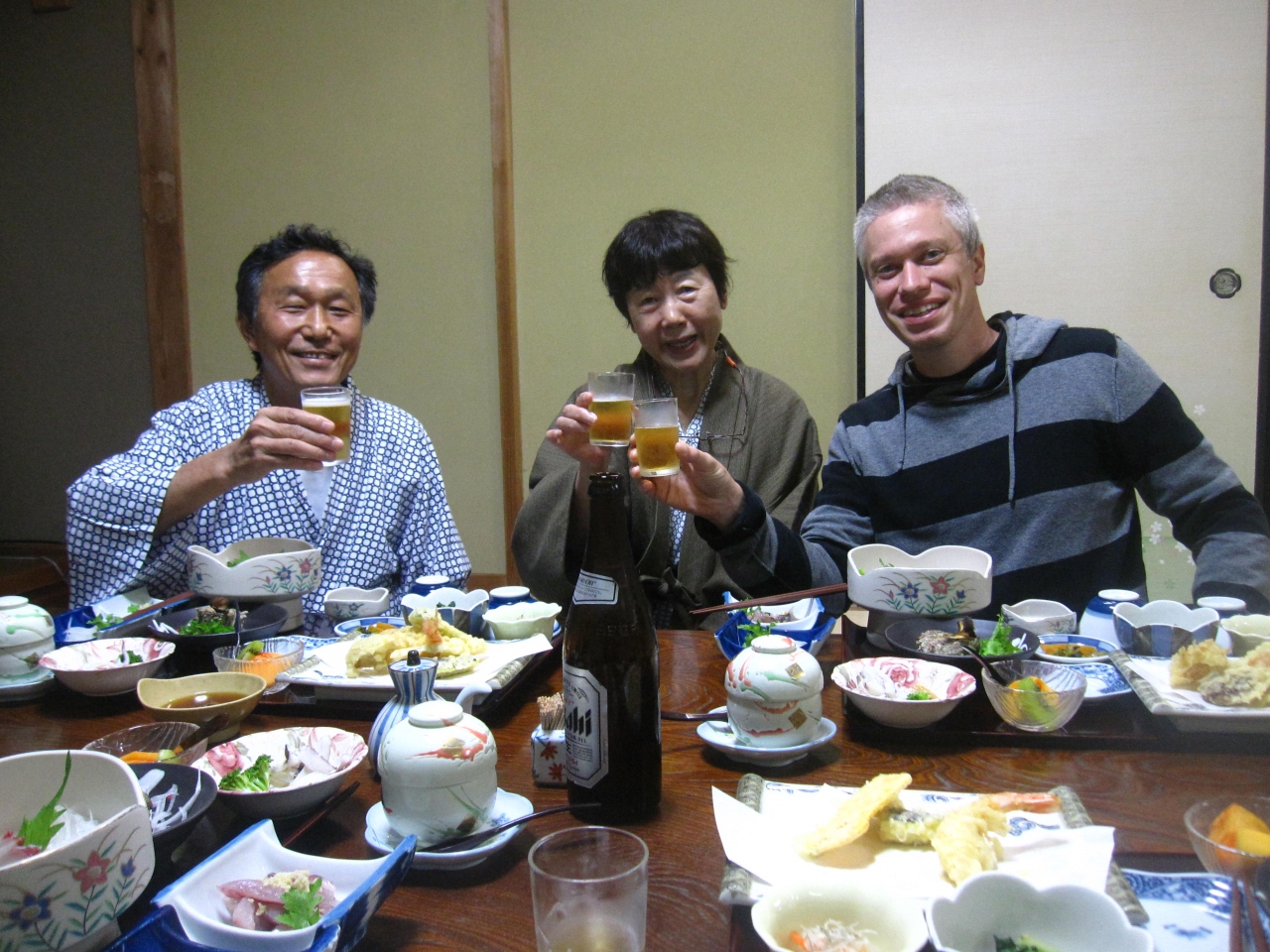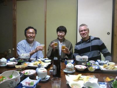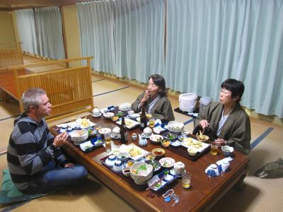 夕食は隣の空き部屋に用意され美味しい料理とお酒で会話も盛り上がりました。