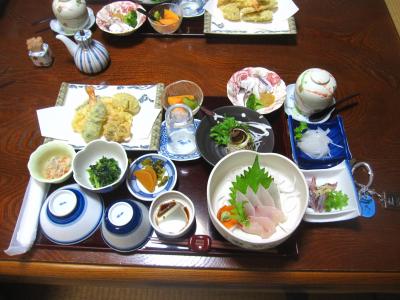 網元の宿との看板だけに新鮮な海産物を中心に野菜の天ぷら盛合せも