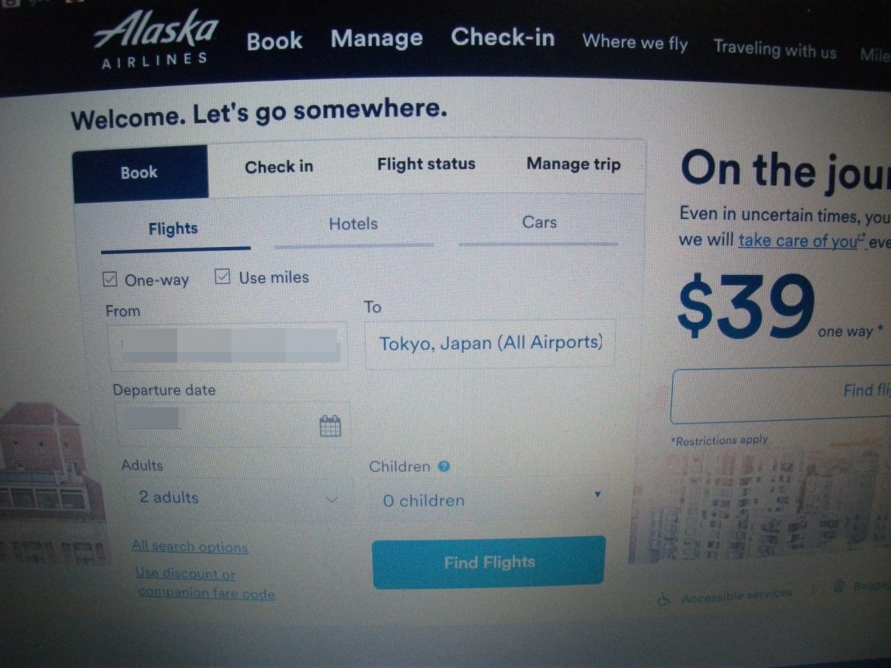 アラスカ航空マイルで取ったJALビジネスクラス特典航空券の残りの片道の予約を無料で変更しました。