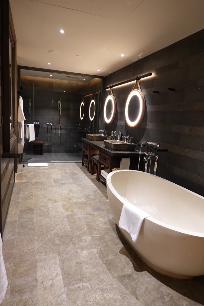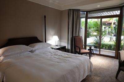 リゾート全体に余裕があるつくりで何処でもゆったりと過ごす事が出来ました。オーシャンビューラグーンスイートルームからはビーチフロントプールに直接アクセス出来て快適でした。このビーチフロントプール「Liang]は明るく賑やかな印象。もう1つあるコートヤードプール「Santhi]は森の中の静かなプールでどちらも気分に応じて楽しめました。朝食は全てアラカルトでどれも美味しく、見た目も美しくて贅沢な時間を過ごせました。また今回は記念旅行と伝えていたのでいろいろなサービスをして頂き文字通り記憶に残る記念旅行となりました。リゾートのホスピタリティ・スタッフは素晴らしかったです。部屋はスイートルームだったので広くて快適でしたが、電灯類のスイッチの配置や使い勝手が悪くて最後まで慣れなかったです。