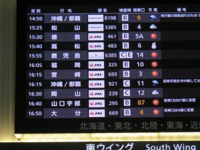 羽田空港に到着して掲示板を見ると、JALにしては珍しく乗る予定の便が遅延している模様で、搭乗手続きも遅れていました。おかげでラウンジで過ごす時間が短くなってしまいました。なぜ遅れているのか分らなかったので説明が欲しかったです
