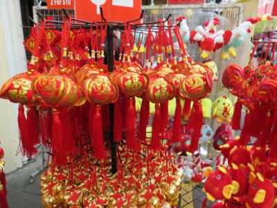 春節1週間前の日曜日にチャイナタウンを訪れたら大混雑でビックリしました。皆さん春節の用意の為の買出しに来ているようです。日本の年末と同じですね。お店の前は普段と違い赤い提灯?のようなお飾りがずらりと並んでいました。とにかく混雑で思うように歩く事も出来ないので時間に余裕を持っての行動が必要です。