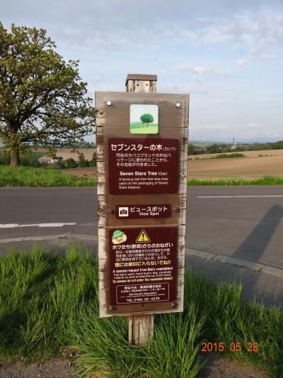 北海道旅行の最終日。飛行機の時間(旭川空港のレンタカー屋さんへ車を返す時間)まで1時間ちょっと余裕があるので、最後まで北海道を楽しもうとガイドブックで、行けそうな所を探してセブンスターの木に行きました。広い畑の中にあるので、カーナビが無ければ辿り着けなかったと思います。駐車場もありました。