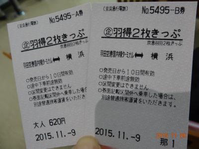 2階の出発ロビーに羽田からの京急とモノレールの切符の自販機がありました。お得な切符も買う事が出来て、私たちは京急羽田から横浜まで2枚綴り¥620(通常1人¥480なので¥480×2=¥960)で購入して利用しました。2人で¥320お得でした。