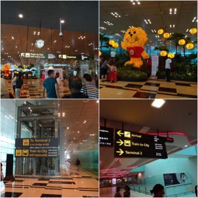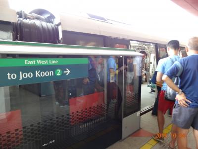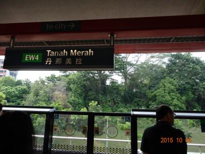 MRTでチャンギ空港~市内へ行くときにはここで必ず乗り換えます。シンガポールに着いてから初めてシンガポールの外気に触れました。やっぱり南国ですね、空気が熱くてジメッとしています。通常市内に行く列車は反対側のホームなので楽です。