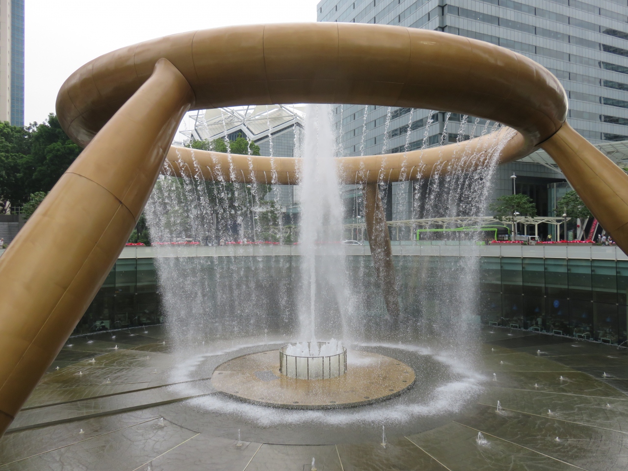 36番バスに乗ってオーチャードからカトン方面に行った時にたまたま噴水の周りを通ったので寄ってみました。MRTのプロムナード駅、サンテックシティーモールにあります。たまたま寄ったので噴水が勢いよく出ている時間だったので近づく事は出来ませんでした。観光客も殆んど居ませんでした。やはりせっかくなので噴水の勢いが弱まって近づける時間帯に訪問した方が良いと思いました。