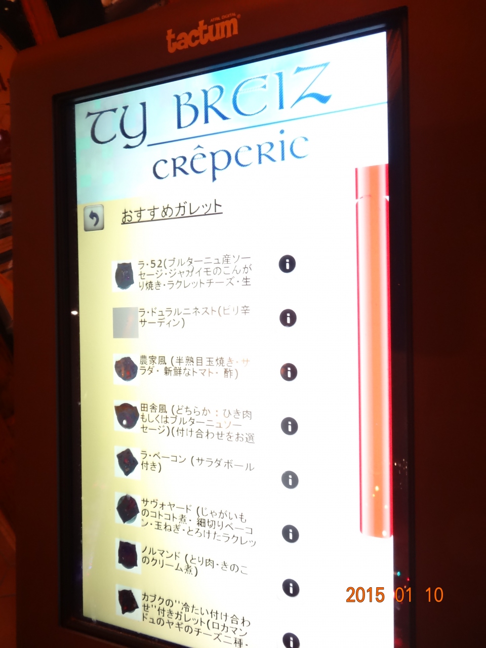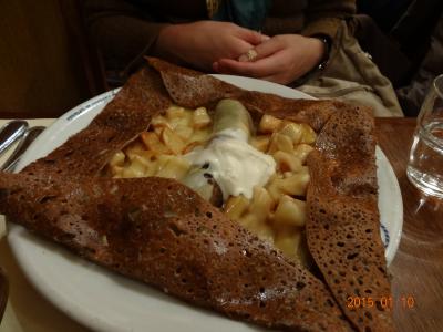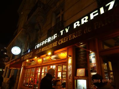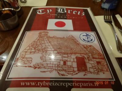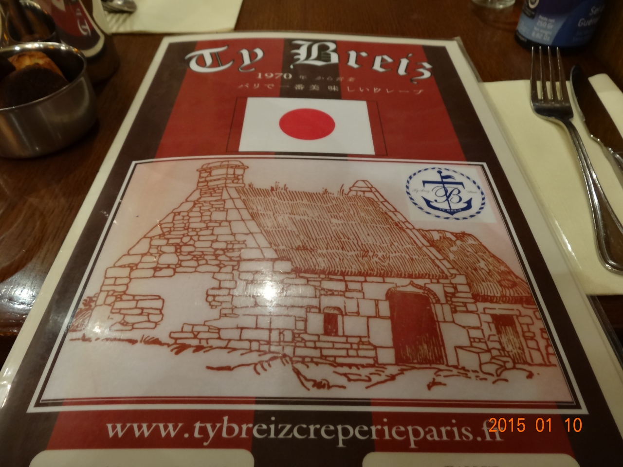私たちの旅行で唯一の外食に「Ty Breiz」に行きました。フランス料理は高いので、フランスらしい食べ物と言う事でガレットを選びました。ガイド本を参考にして「Ty Breiz」に行きました。日本語対応メニューがあったり、高田純次さんと福ちゃん写真も飾られていました。