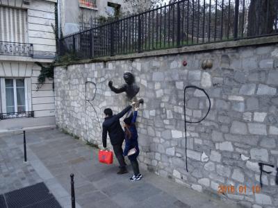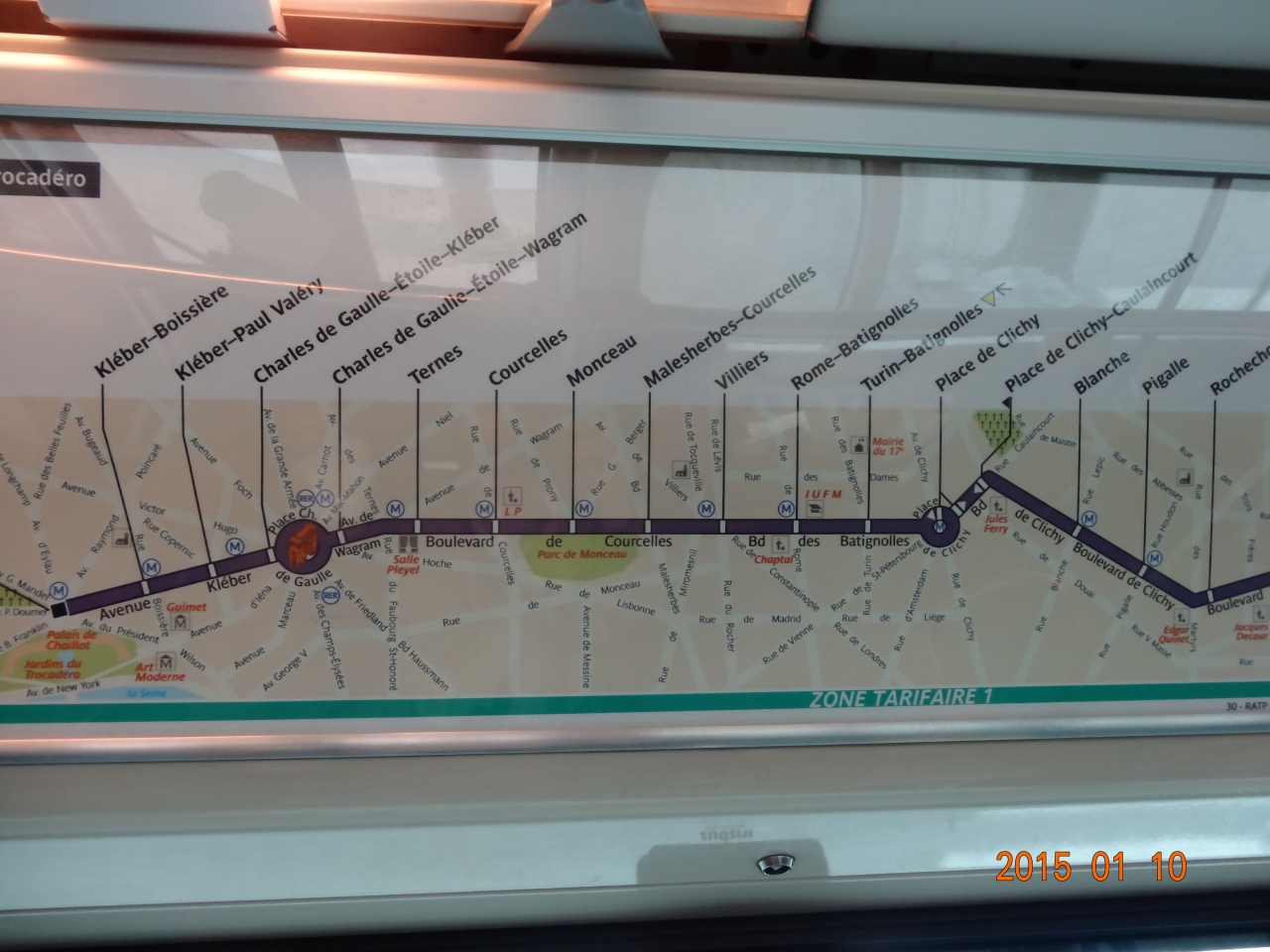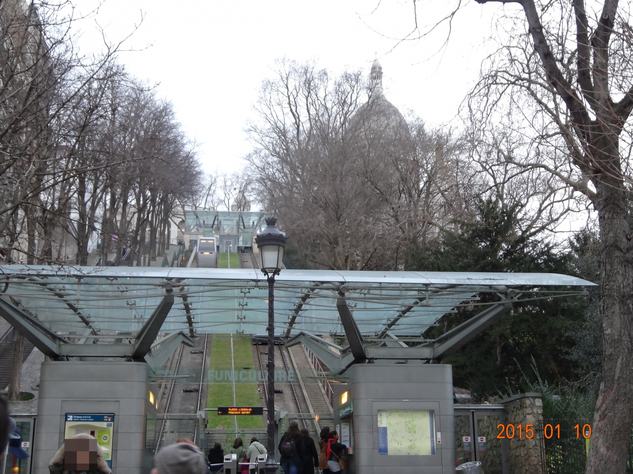 モンマルトルの丘の一番高い所にサクレクール寺院があります。モンマルトルの下からサクレクール寺院まで行くには上り坂で少々疲れます。ちょうどこの日モビリス(1日乗車券)を使用していたので、ケーブルカーを利用しました。ちょっと短いのでコストパホーマンスは?ですね。