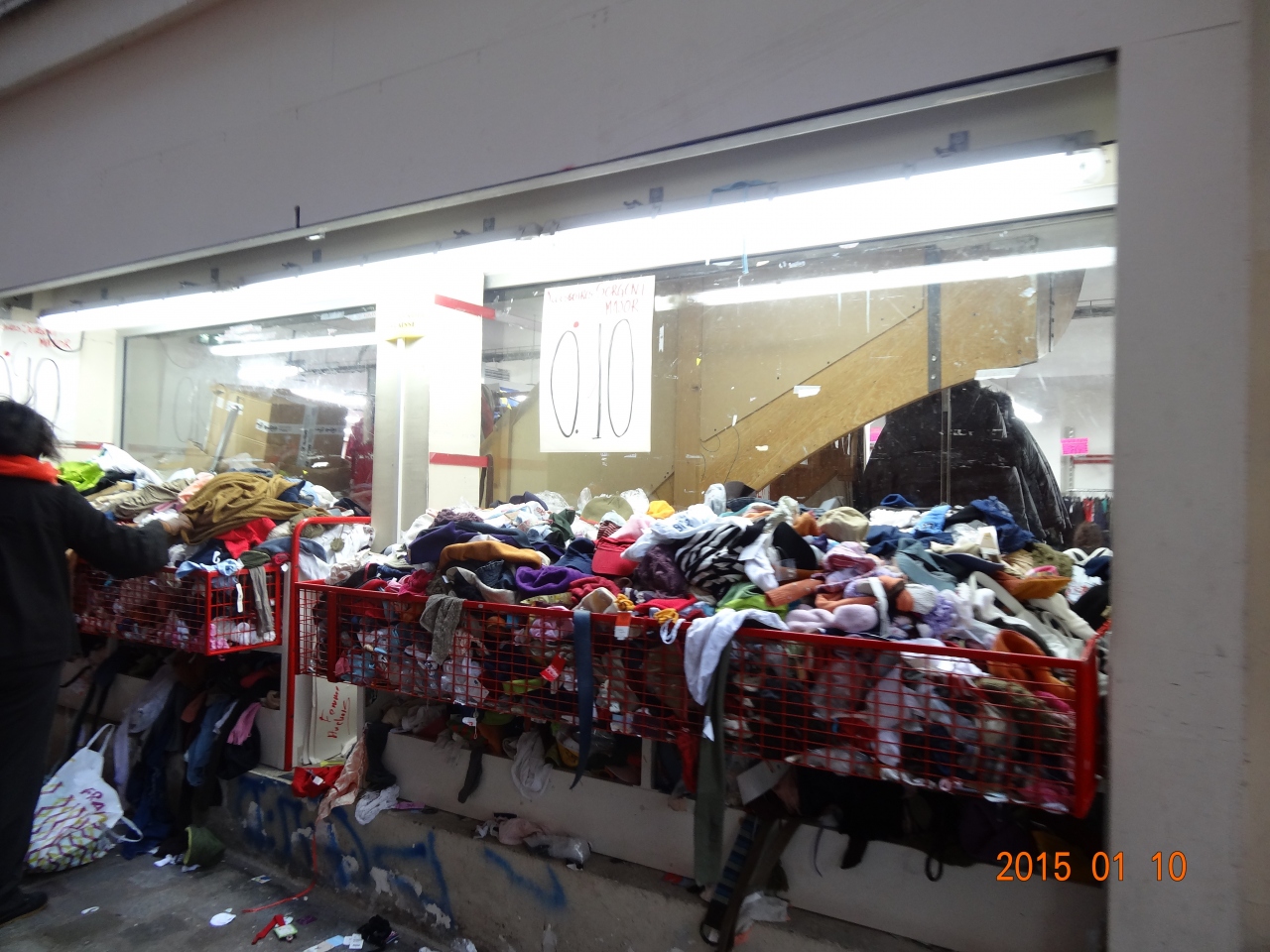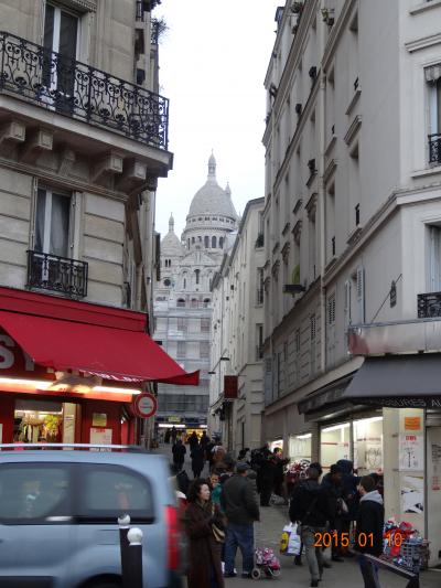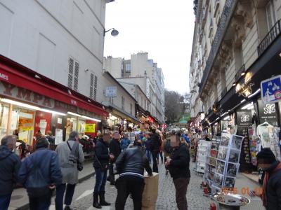 ソルドが始まったパリ。モンマルトルの街にソルドはあまり関係ないような気がしますが、このお店の前のワゴンには服が溢れてごちゃごちゃでした。このモンマルトルの街並みは、オペラ座界隈の洗練された感じとは違って、日本で言う下町という感じで親しみやすい感じでした。