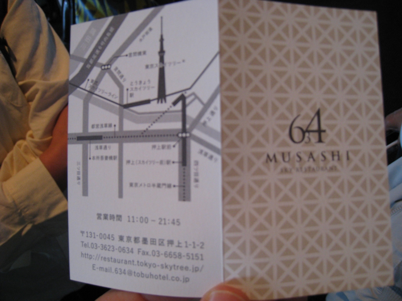 スカイツリー内レストラン「Sky Restaurant 634(MUSASHI)」は早い時間に満席の案内が出てしまい、入店することが困難。当日朝10時より予約を受け付けているとの事。