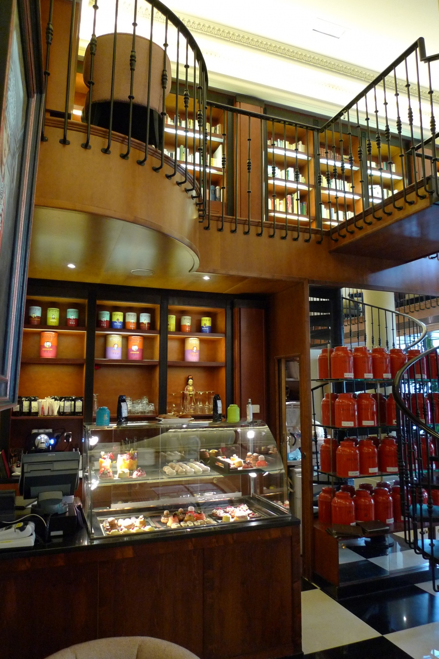 ホテル入り口のサロン・ド・テ「メゾン・ドゥ・テ アン・テ・リュ・スクリーブ」ではおいしい紅茶とケーキを優雅な雰囲気で楽しめます。