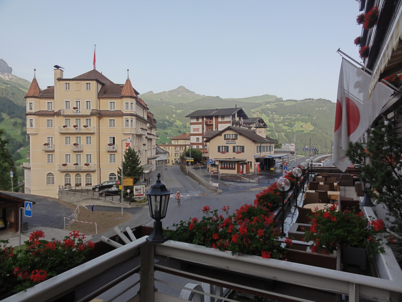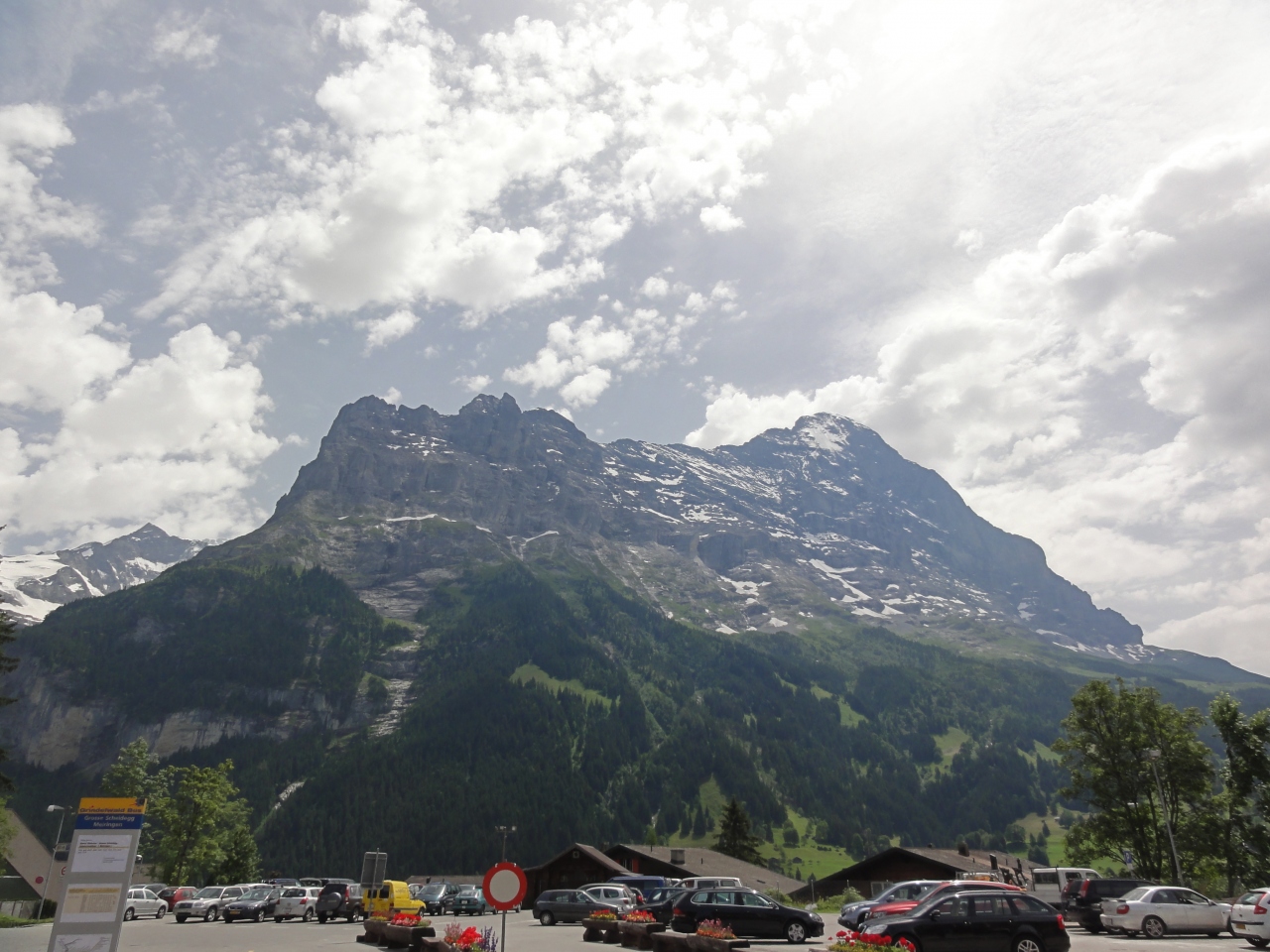 ホテル前はバスターミナルの大きな駐車場で、雄大なアイガーを堪能出来ます。