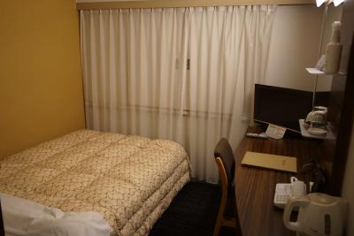 部屋はビジネスホテルとしては標準的なもの。大通りに面していますが外の音はあまり気にならず、壁やドアが薄いのか廊下で人の話す声や、自販機の音(商品が取出口に落ちるガシャンという音)がやや気になりました。