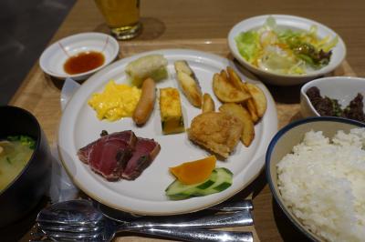 岡山駅から歩いて数分、道の向かいにはイオンモールがあります。客室の内装は綺麗でしたが、古いホテルのようで天井は低く、窓には結露対策なのかビニールが貼られていました。交通量の多い通りに面し、繁華街も近いためか外の音が気になりましたが、深夜には落ち着きました。フロア移動は小さめのエレベーター1基のみなので、時間帯によって多少時間をとります。朝食は1Fのカフェで和洋数種類のメニューから選ぶ形式です。