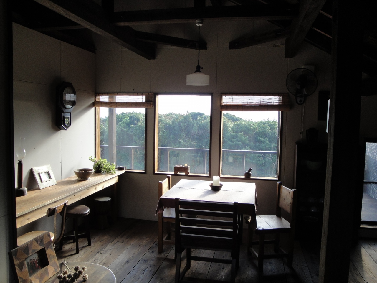 南原千畳敷そばから未舗装の細い道を少し入った森の中にあります。店内の雰囲気も良く、島の特産明日葉を使ったケーキもおいしく頂きました。店の方のご好意で建物の上にある小さな展望台に上らせてもらいました。さほど高くはないですが森の向こうに海が見渡せ(青ヶ島も見えました)、反対側には八丈富士がドーンとそびえる素晴らしい眺めでした。