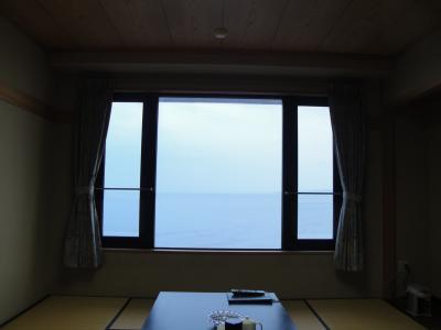 海を一望というより窓のすぐ下まで迫ってます。魚づくしの料理も美味しくいただきました。他の宿泊客も少なかったので波の音を聞きつつ露天風呂にゆったりと浸かれました。バス停もすぐ近くにあるので、車以外でもアクセス良好です。